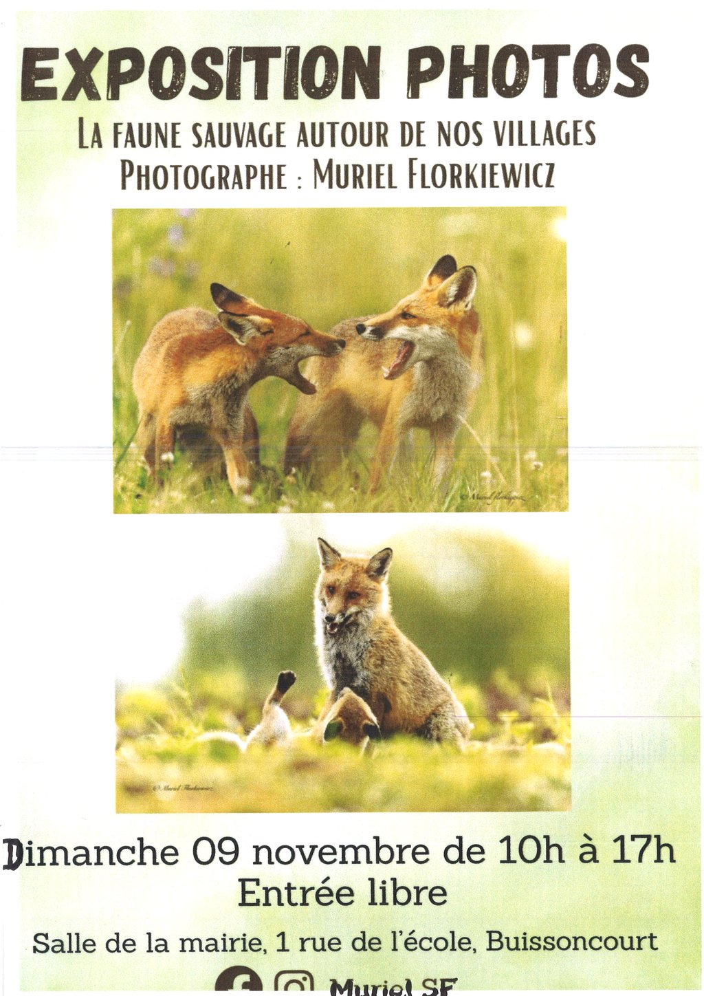 Exposition photos de la faune sauvage autour de nos villages, photographiée par Mme Muriel FLORKIEWICZ