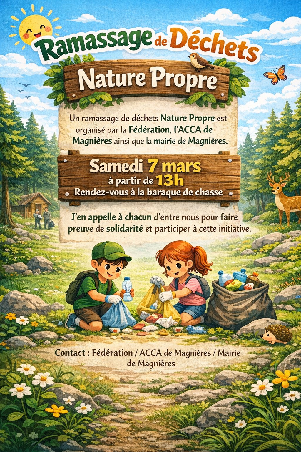 L'association de chasse de Magnières, en collaboration avec la mairie de Magnières organise une après-midi de ramassage des déchets dans la forêt.